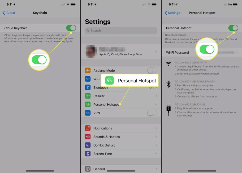3. در رایانه مک (Mac)، به هاتاسپات شخصی آیفون خود (iPhone Personal Hotspot) متصل شوید.